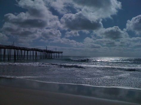 Still victory at sea around Avon. The wind came up overnight and turned a couple points east, so now even around the cape has a serious drift and a lot more texture (bigger too). Ask any surf shop owner what it’s looking like in the near future and they don’t look at swell models. They look at NOAA wind models.