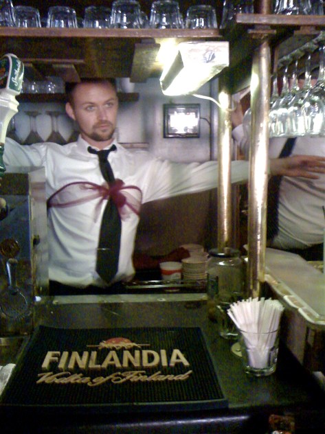 Just winding down after a long night at Dee’s (jazz club). I was the emergency bartender, covering for Ron, who cut off the end of his finger cooking on Tuesday. Just like riding a bike, only a creaky old rusty one.
