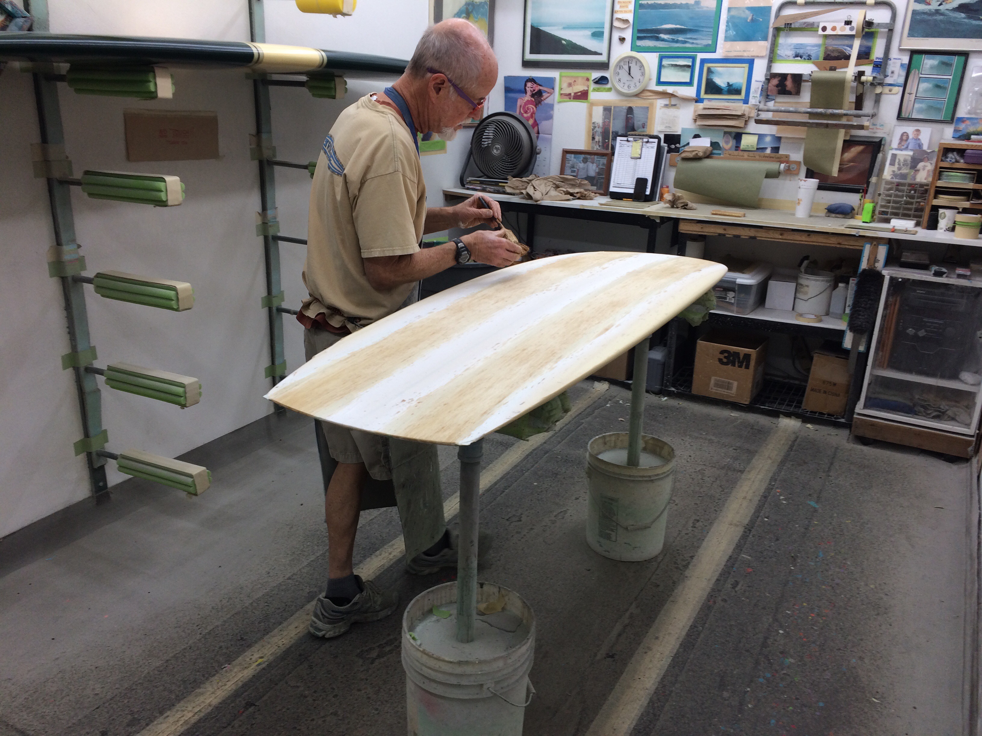 This past week I had the privilege of witnessing some of the best craftsmen in the surfboard industry practice their skills up on “the hill”. I feel very fortunate to get a glimpse into this world that is completely invisible to most. One of these craftsmen was Sam Cody. A veteran color guy, both resin and airbrush, Sam has worked for some of the greatest labels in surfing.