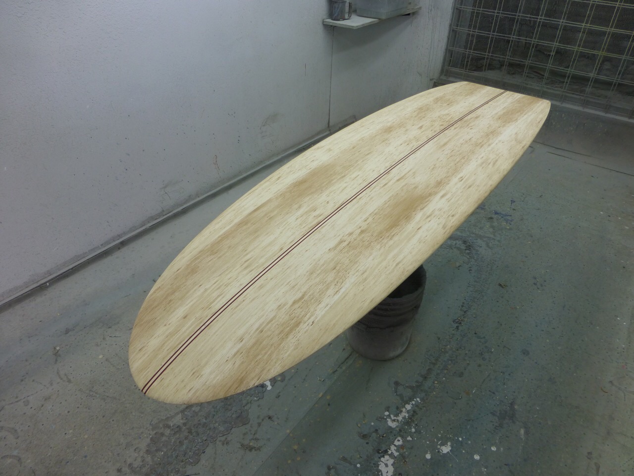 I completed a shape that a good client of mine requested and was very stoked that he decided to splurge for one of Sam’s “falsa” jobs. Not even remotely cheap, but you have to see one to believe it. Seriously, he recently did some falsa stringers in a board for Jim Phillips that even the veteran sander at Bing didn’t recognise for a good portion of the job, and this is a guys that knows! Here is the man at work and just a taste of the beginning of the project.