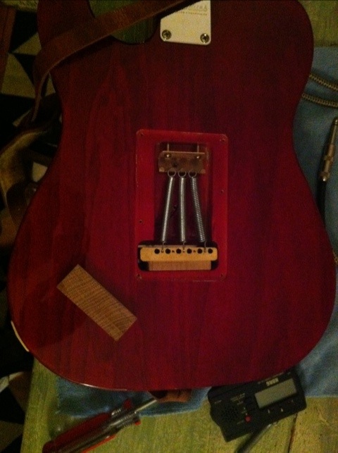 Thanks to Darren Whitmer at Brown Forman Cooperage for the piece of scrap white oak. It came from a bourbon barrel stave destined for either Jack Daniels, Woodford Reserve, or Old Forester. It made the perfect block for my tremolo modification on my newly acquired St. Blues Bluescaster. This is one sweet guitar and I’m in the process of dialing it in. What could be better than a bourbon barrel stave for this project? American white oak!